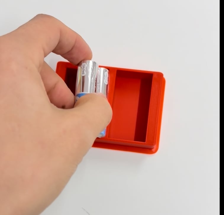 袋の上から電池を「凹凸に差し込んでひねるだけで」動作をサポートします。